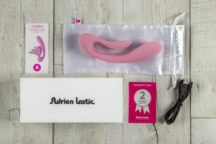 Description:Â Â Adrien Lastic exploring senses. U-Shaped double use G-Spot vibrator. Highly flexible and can be used during intercourse. Exceptionally versatile and adjustable, this stylish vibrator is powered by 2 individual powerful motors and offers many angles to experiment with and get maximum pleasure! Twist it straight to use it as a traditional vibe or bend it in half for a double G-Spot and clitoral stimulation. 100% velvet touch silicone. G Wave U Shaped Dual Rabbit Pink Vibrator is made using latex free, phthalate free 100% super soft silicone. Color Pink. 10 speeds. 2 motors. Integrated battery and charger. 7 inches by 1.2 inches. USB rechargeable. USB charging cord included. 2 year warranty. Added image and video 19.