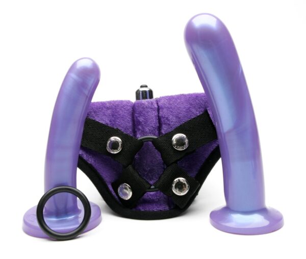 Description:Â Â If you’re ready to take a step up from the beginner strap on, the Intermediate Kit is for you! Supplied with two long, thick dildos, two O-rings and a soft yet strong harness, this set will blow you away! The dildos supplied in this set are made from ultra-premium platinum silicone, meaning that they are incredibly hygienic, totally hypoallergenic and phthalate free too! Smooth and thick, with a sweet spot teasing curve, whether you’re looking for a dildo that’s a small step up or something more fulfilling, this kit can accommodate! The durable harness has a soft pad at the front, popper fastening straps and a specially designed pocket to hold the vibrating bullet! Adjustable between 28 and 60 inches in circumference, this harness till fit perfectly and give you total control. Turn the single-speed vibrating bullet on, pop it in the harness and the sensations will titillate you and your partner. Measurements: Small dildo: 5.5″ overall length, 3.25″ circumference, 2.5″ base diameter. Large dildo: 6.5″ overall length, 4.5″ circumference, 2.25″ base diameter.