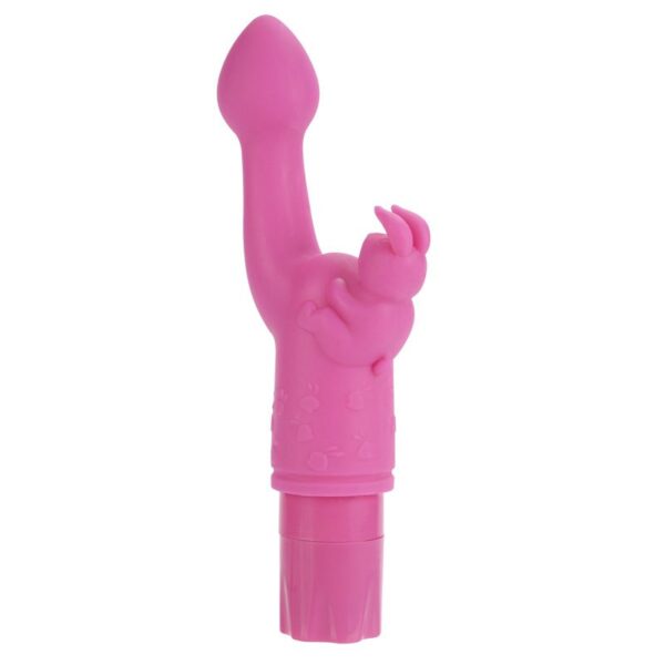 Description:Â Â Silicone Bunny Kiss Pink Vibrator. The ultimate bouncing bunny with flickering ears is now available in Silicone 2 orgasmic motors. Ergonomic design for G-spot stimulation. 3 powerful speeds. Easy push button control. Sized for beginners, intermediate, and advanced users. Safe and pure for body and pleasure. Made using phthalate free, non-toxic materials Silicone shaft, bunny massager, ABS plastic cap. Vibrator measures 2.75 inches long by 1.25 inches wide. Bulk weight 4.5 ounces. Vibrating sex toy requires 2 AAA batteries, not included. Do not leave batteries in the vibrator between uses. A water based lubricant is recommended. Category: For Women, Vibrators, Vibrators. Silicone Butterfly Kiss Vibrator is a registered trademark for California Exotic Novelties. Sex toys and sexual wellness. New images added June 9, 2013. Colors may vary.