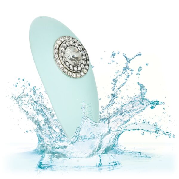 Description:Â Â Jopen Pave Grace Teal Green Mini Palm Sized Massager. Treat yourself to the sparkling Pave Grace, a mini massager with sparkling crystal adornments, ergonomic curved shape and sensational vibrations for a one of a kind pleasure experience. Fit this mini massager perfectly in your palm and enjoy full control over the indulgent vibrations and versatile massager shape. The ultra smooth curved shape is covered in a premium silicone with two sleek profile buttons. This silky smooth vibrator is packed with 7 functions of vibration and 5 independent speeds for each function for stimulation made just for you. The easy touch control buttons let you effortlessly flicker through each function of vibration, while increasing or decreasing the function intensity. Whether you are taking a dip with a lover or indulging in a steamy solo session, look forward to up to 2 hours of waterproof vibration. Recharge pleasure and get back to playtime in only 2 hours with the provided USB cable. The hypoallergenic luxury teaser is made from Satin Finish silicone with glass crystal adornments. Specifications: Color Teal. MaterialsSilicone. Power sourceUSB Rechargeable, included. FeaturesPhthalate Free, Waterproof, Rechargeable, Vibrates. 1 year warranty. Maximum run time 60 minutes. Maximum charging time 120 minutes. Measurements 1.25 inches by 4 inches by 2 inches massager. Weight bulk 1.9 ounces. Package 9.5 ounces. Package 2.5 inches by 5.75 inches by 6.75 inches. Video.