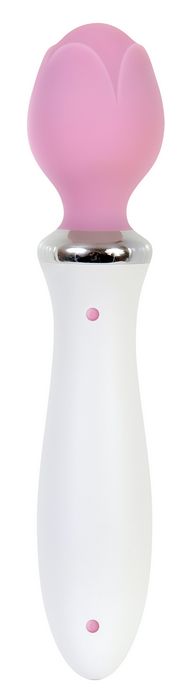 Description:  Luminous Love Bud Massager body wand style stimulator. Come with a USB cord. Pretty rose bud head. Made using latex free and phthalate free materials Silicone. Rechargeable. Power meets beauty with this intense wand vibrator that delivers five potent speeds and seven exhilarating functions. Its elegant flower shaped tip is curved and rounded with a precise design that lets your pleasure blossom to its fullest potential. LED lights inside the flower and control panel display your settings, while the ergonomic handle allows your hands to fully relax. Clean up is a snap with Evolved Toy Cleaner and a warm water rinse. Features: powerful wand vibrator. Intense clitoral stimulation. Made with luxurious silicone. 5 powerful speeds and 7 functions. Rechargeable. USB cable included. Elegant LED flower shaped tip. Control base with LED lights. 8.4 inches total length, 2.6 inches insertable, 1.8 inches width. Chrome finished collar. Video added.