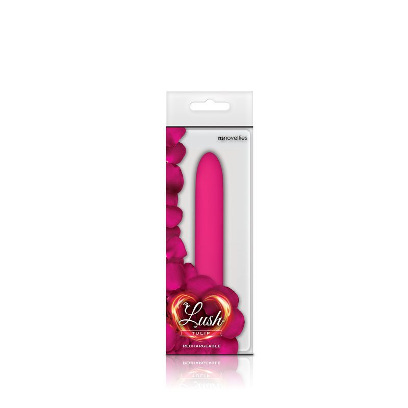 Description:Â Â Lush Tulip Pink Vibrator from NS Novelties. Lush Tulip Vibrator is a slim rechargeable vibrator 5.5 inches that delivers explosive vibrations. 7 speeds and functions. Velvet touch ABS plastic. USB charging cable included. Water resistant and suitable with all lubricants. Product dimensions 5.5 inches by 1 inch. Product material ABS plastic. Battery type Rechargeable.