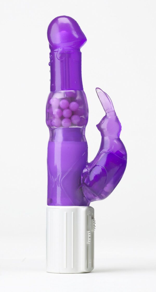 Description:  Rabbit Habit is the Rolls Royce of sex toys according to O Magazine. The Vibratex Rabbit Habit with tumbling pearls and dual motors was designed as a cordless version of the Rabbit Pearl, the vibe featured on Sex and the City. Made of elastomer, this version is phthalate-free. Just like its cousin, the Rabbit Habit, this lovely, purple sparkly elastomer dual-action vibrator has tumbling ball bearing pearls and a rabbit-shaped stimulator. The vibrations are controlled from the base instead of a separate battery pack. Featured in O Magazine, Self Magazine, Glamour Magazine, Jane Magazine and many more publications. The total length is 9 inches with an insertable length of 4 inches. Vibrating sex toy requires 3 AA batteries, not included. Do not leave batteries in the vibrator between uses. A water based lubricant is recommended. Always clean before and after use. Rabbit Habit Vibrator is a part of the Classic Series from Vibratex Vibrators. New images added March 8, 2013.