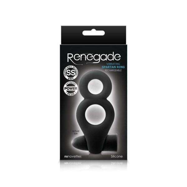 Description:  Renegade Vibrating Spartan Ring Rechargeable Black from NS Novelties. Let the Spartan ring arouse the warrior in you. A powerful rechargeable bullet delivers unmatched vibrations, while the super soft silicone ring supports and enhances performance. Suitable with all lubricants. Charger included. Water resistant. Product dimensions 4.25 inches by 2.4 inches by 1.22 inches. Package dimensions7.01 inches by 3.58 inches by 1.85 inches. Packaged weight 4.00 ounces. Product materialsSilicone cock ring, ABS plastic vibrating bullet. Battery type Lithium Ion, 1 included.